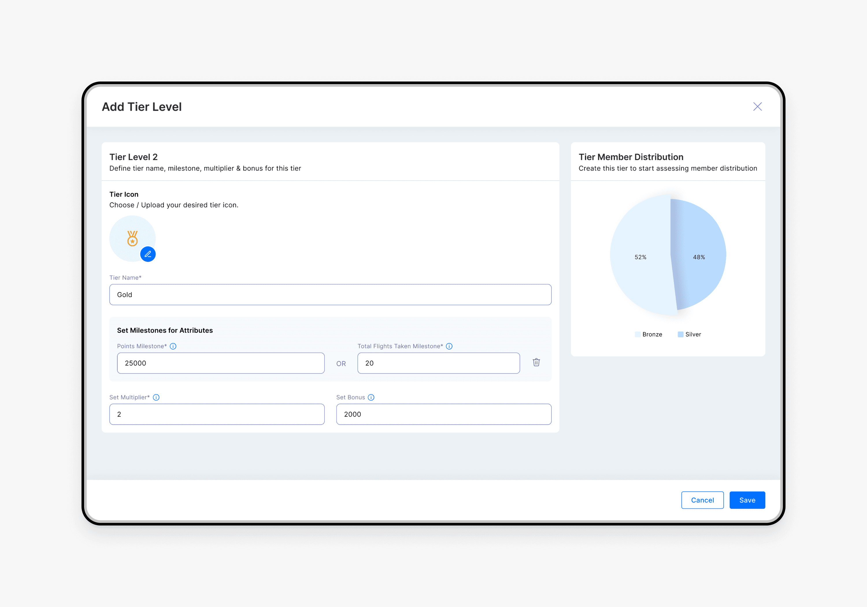A progression model that encourages members to move upward through levels. This creates motivation and exclusivity and is an important driver of engagement.