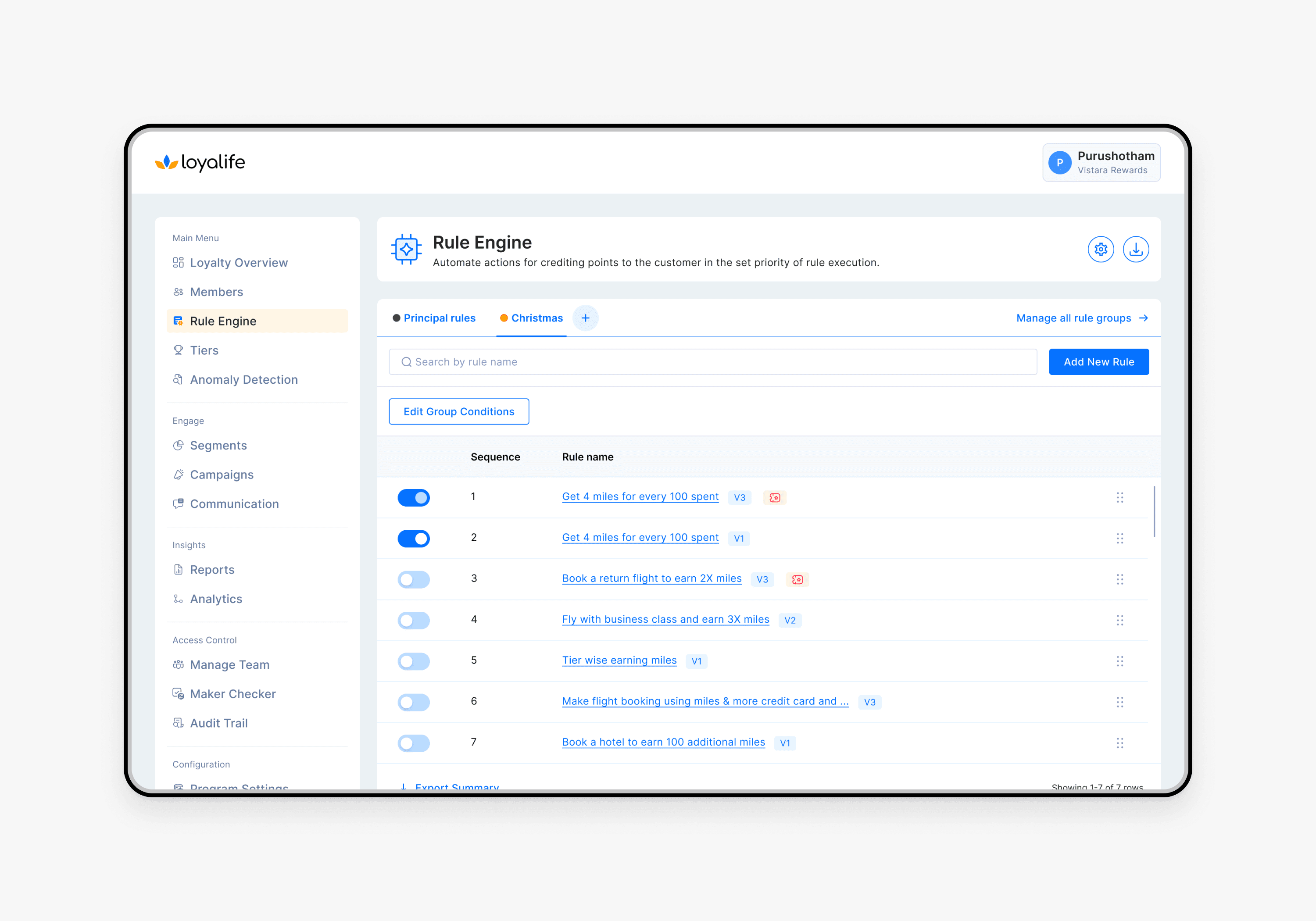 The core of Loyalife. This engine controls how, when and what should be credited or debited for a user. It supports logic based on transactions, behavior, tier levels and segments. Banks can configure loyalty mechanics without heavy engineering dependency.